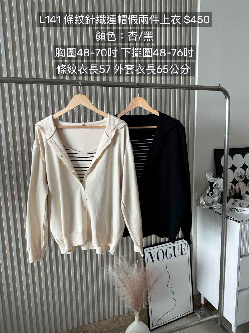 熱賣中🔥 即將售完L141條紋針織連帽假兩件上衣