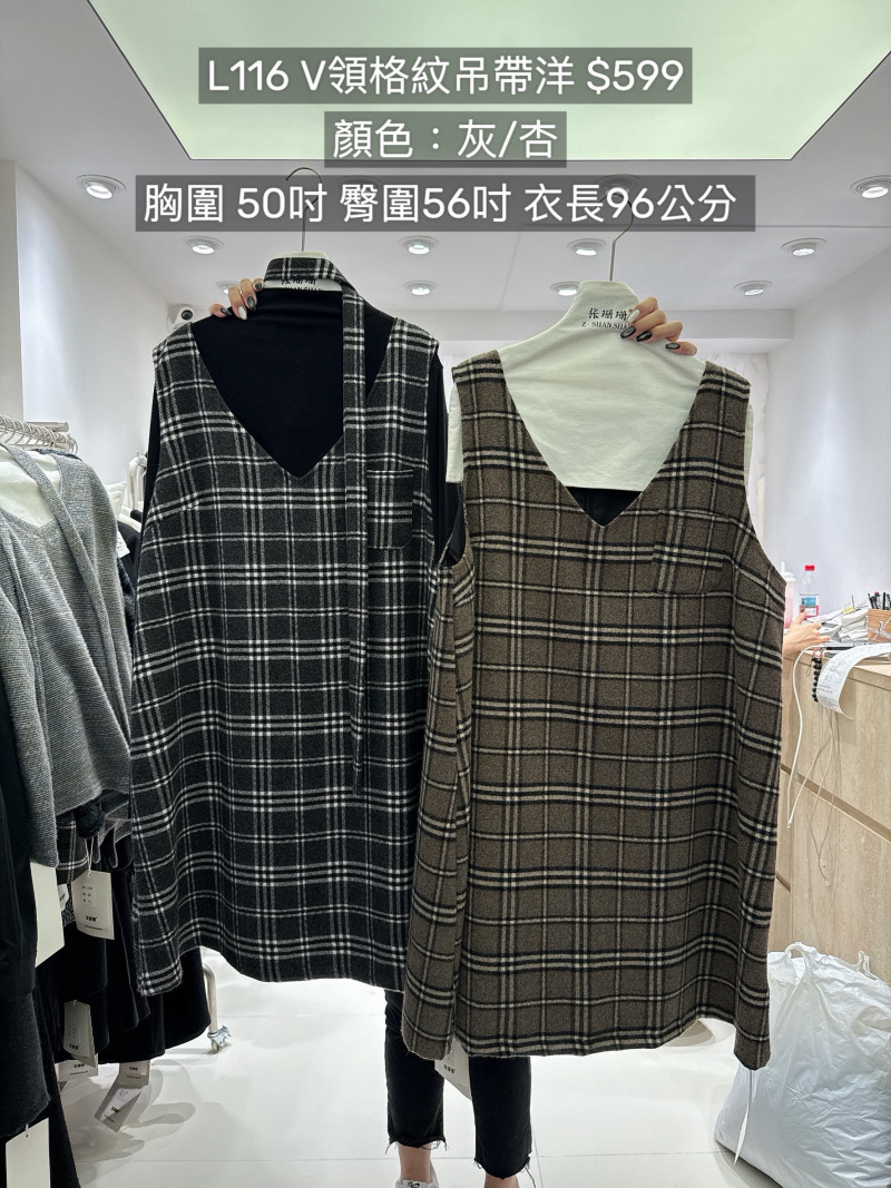 熱賣中🔥 即將售完L116V領格紋吊帶洋(杏)