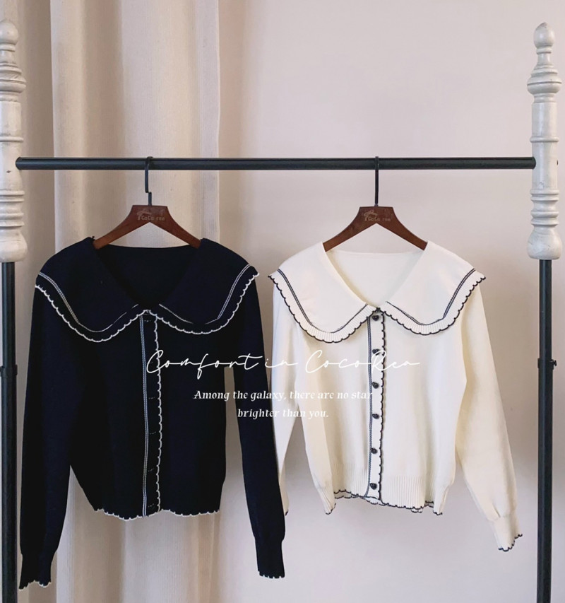 熱賣中🔥 即將售完17標 預購 愛心排釦荷葉領拼色針織上衣 黑/米 胸96 長56 連線價1180喜歡+1帶哪裡取(A嘉義取B台中取C郵寄)