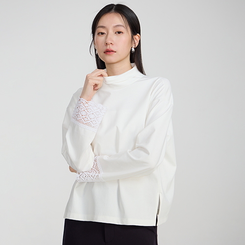 熱賣中🔥 即將售完【KLÚT】蕾絲拼袖寬高領造型素面上衣 - 兩色