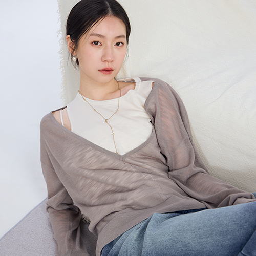 熱賣中🔥 即將售完【KLÚT】假兩件式透膚感針織上衣 - 兩色