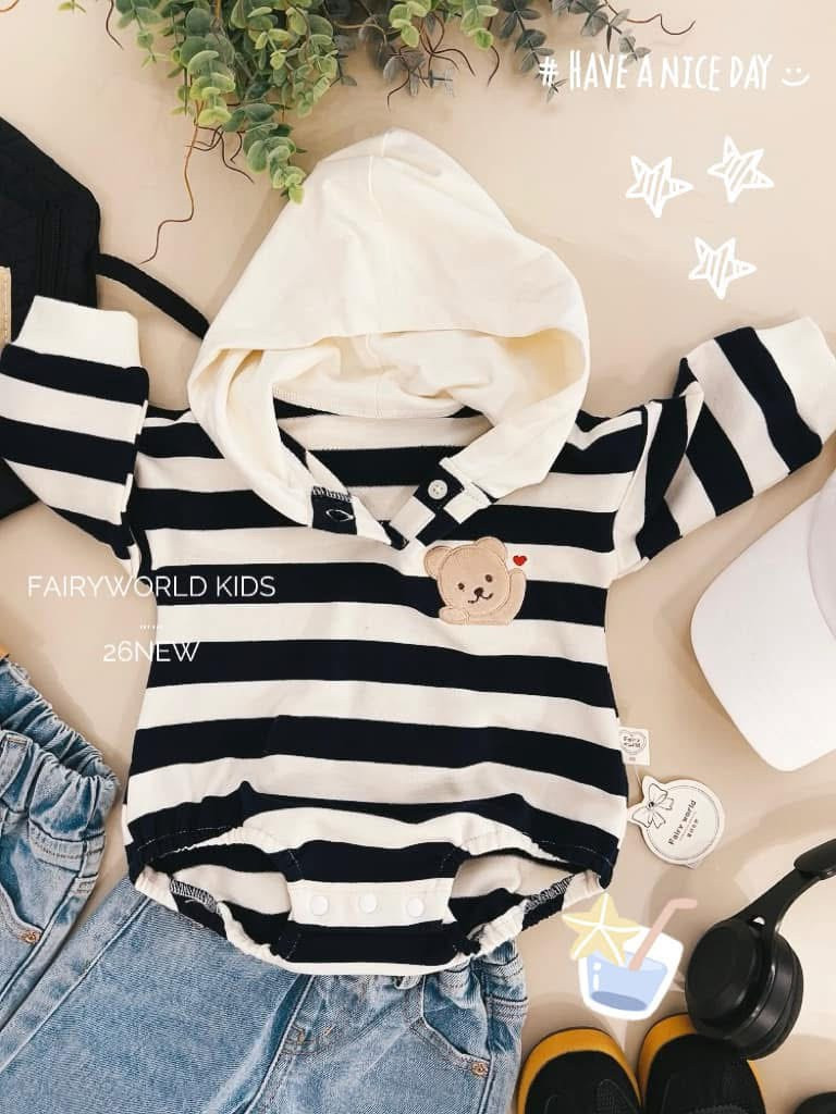 熱賣中🔥 即將售完TH0917(10)-1304藍白條紋愛心小熊連帽包屁(38673)