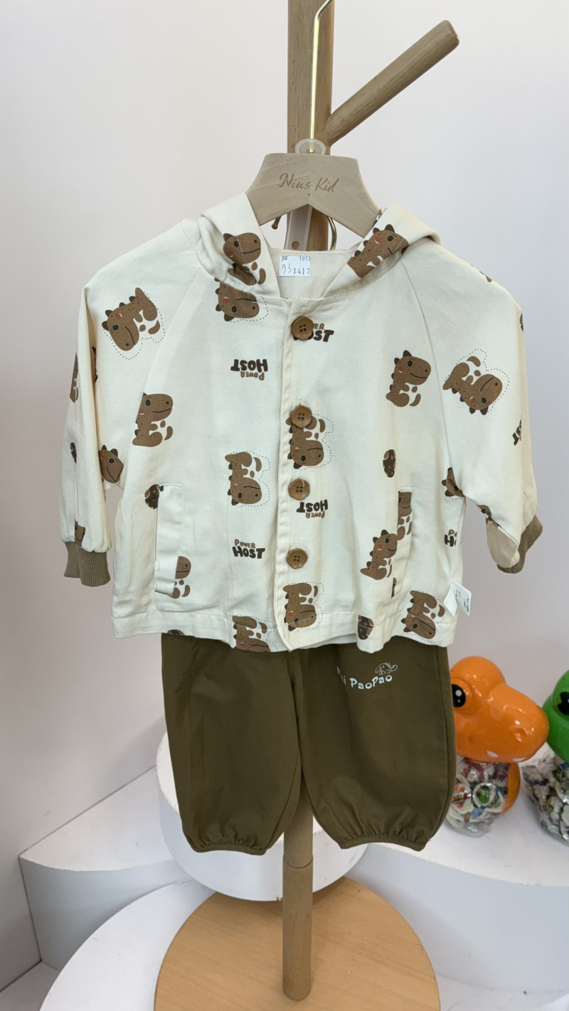 熱賣中🔥 即將售完G1013(10)-1417杏咖恐龍連帽排釦套裝