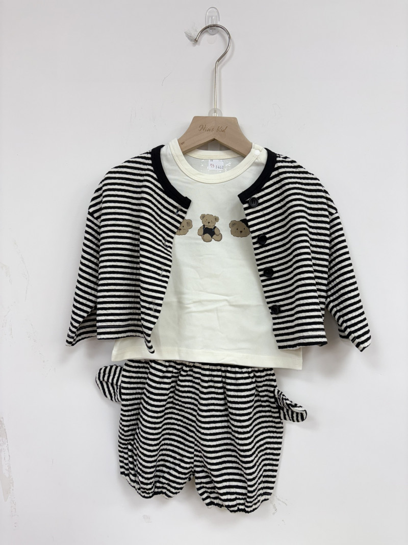 熱賣中🔥 即將售完G1110(10)-1468黑杏條紋熊熊三件套