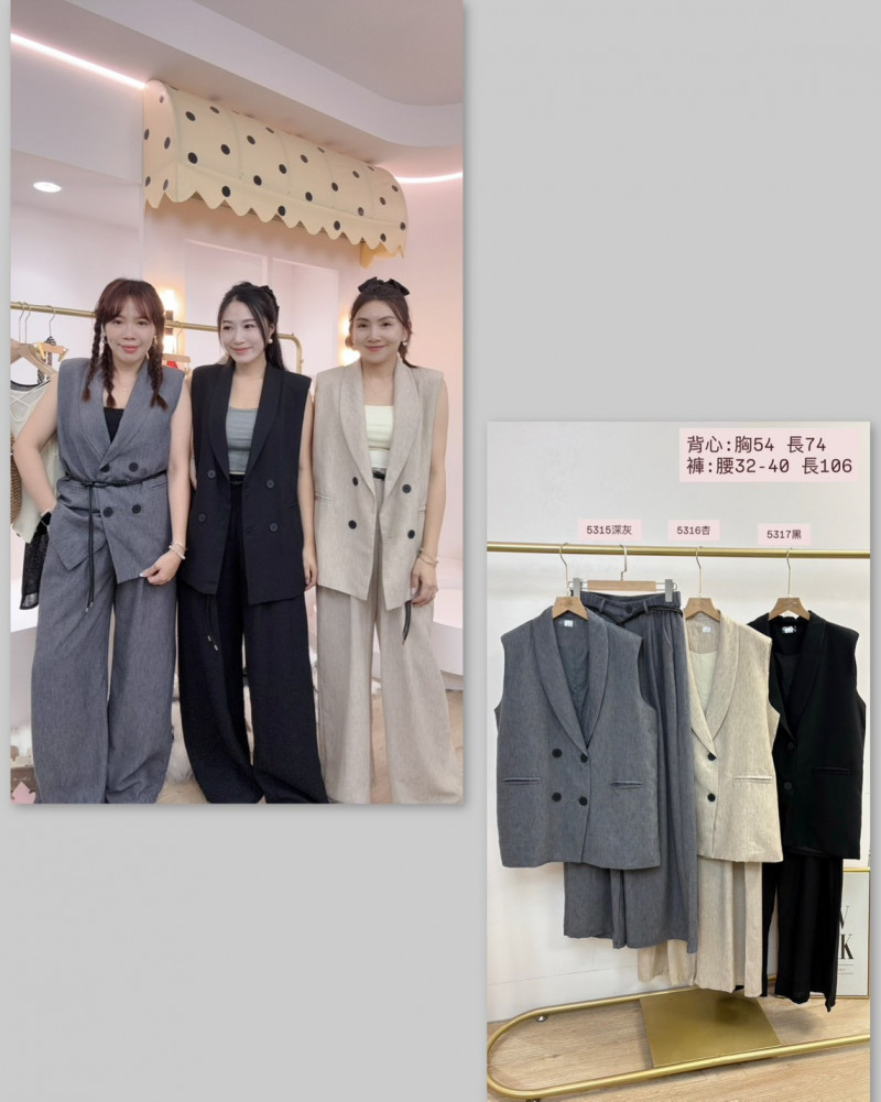 熱賣中🔥 即將售完女V0822(10)-四扣西裝背心附腰帶+落地長褲(1390943)(5315深灰)