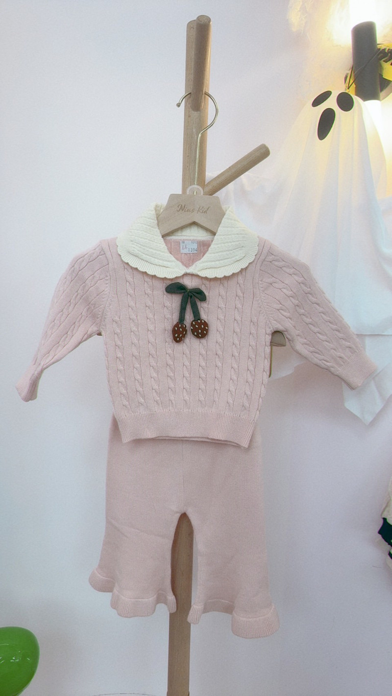 熱賣中🔥 即將售完G1013(10)-1394粉櫻桃麻花紋針織套裝