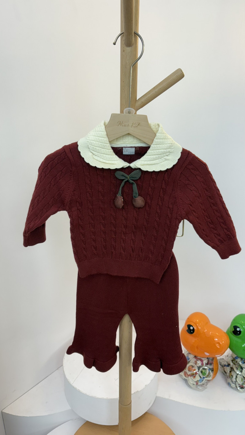 熱賣中🔥 即將售完G1013(10)-1395紅櫻桃麻花紋針織套裝