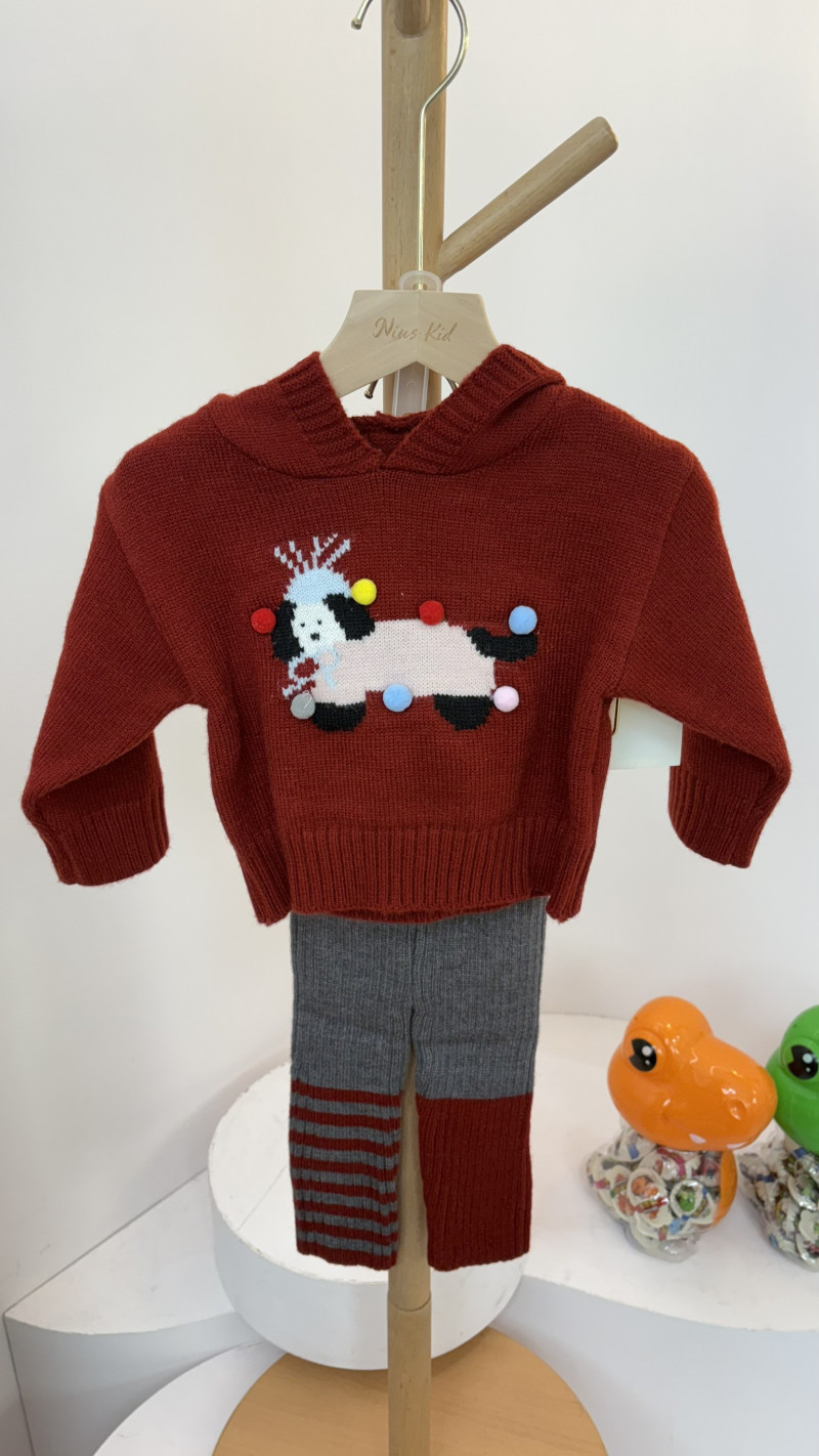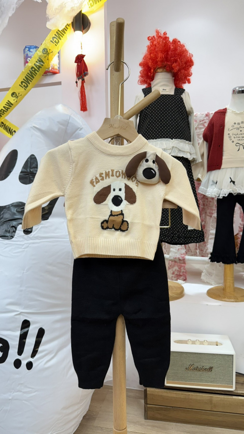 熱賣中🔥 即將售完G1014(10)-1451杏掌門狗針織套裝附毛帽