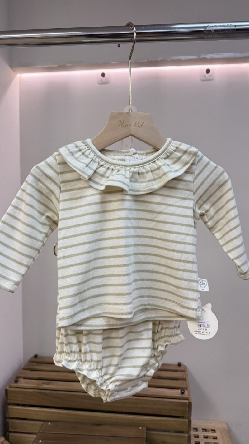 熱賣中🔥 即將售完TH0910(10)-1287綠條紋荷葉領套裝(38742)