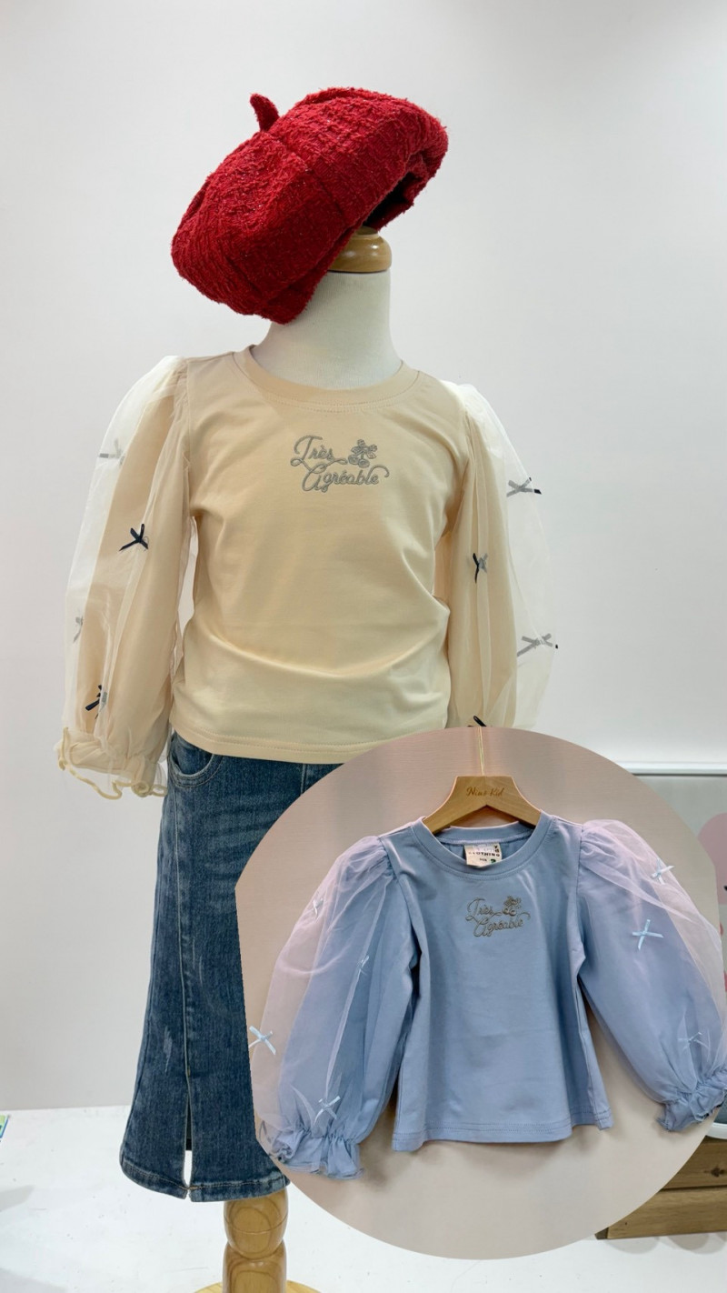 熱賣中🔥 即將售完TH0903(10)-1280杏英文蝴蝶結紗袖上衣(38157大)
