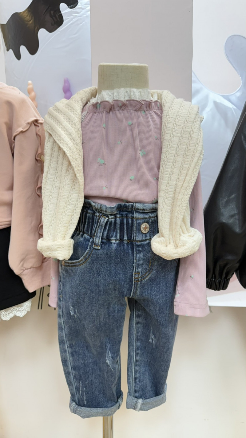 熱賣中🔥 即將售完TH0821(10)-1064藍花苞微刷破牛仔長褲(9885A小)