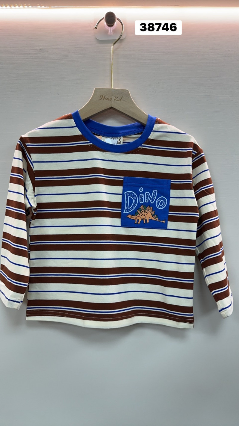 熱賣中🔥 即將售完TH0901(10)-1192咖條紋口袋恐龍上衣(38746)