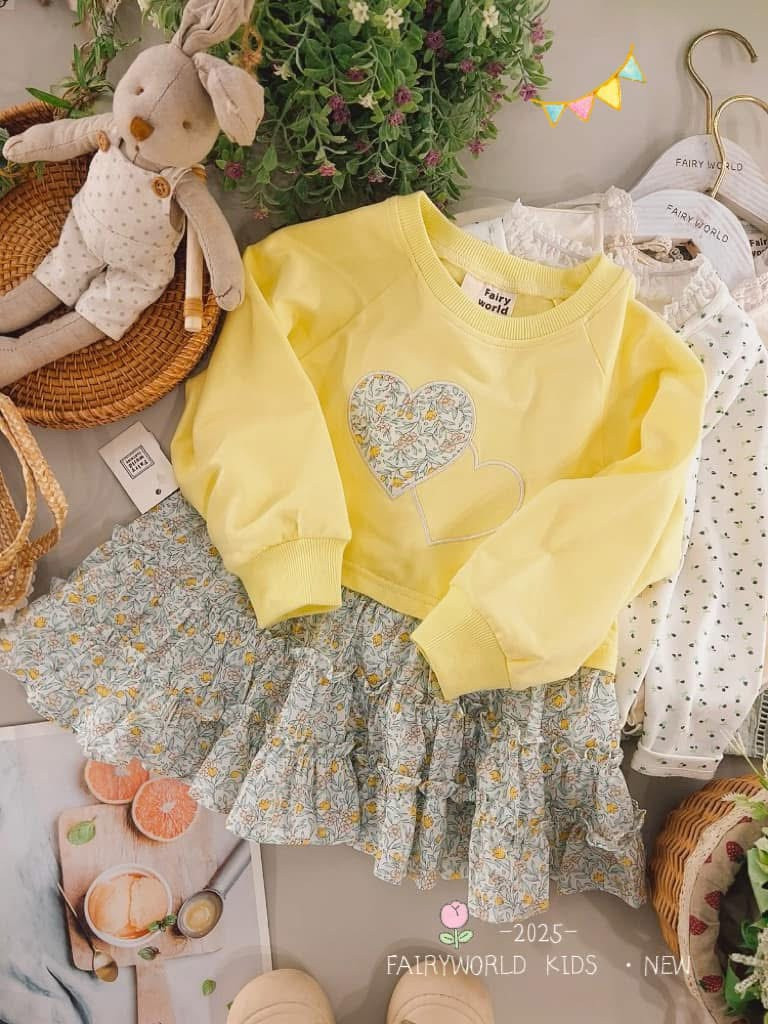 熱賣中🔥 即將售完TH0827(10)-1100黃雙愛心小花拼接洋裝(38565)