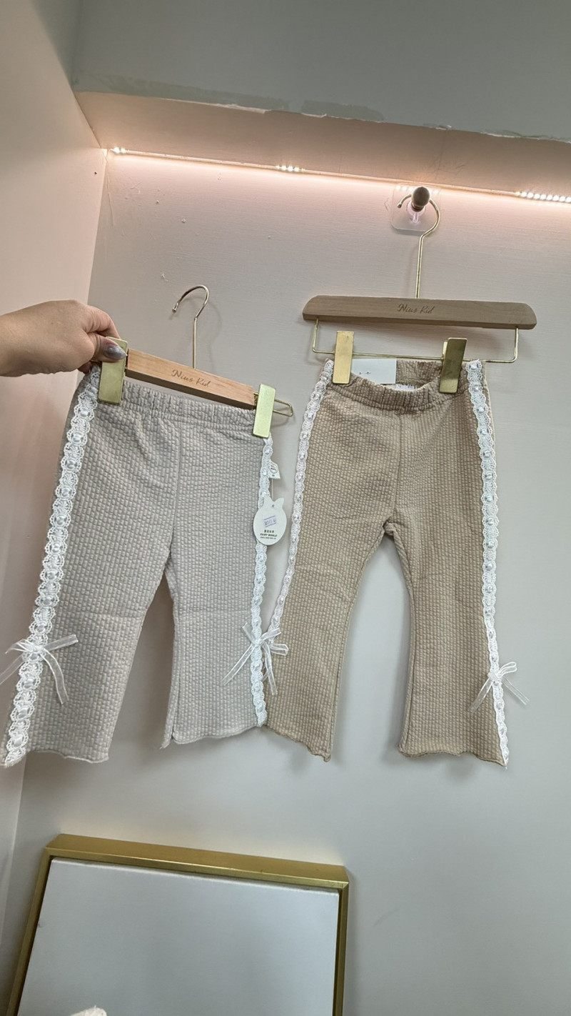 熱賣中🔥 即將售完TH0901(10)-1171淺灰緹花邊蝴蝶結喇叭褲(38511)