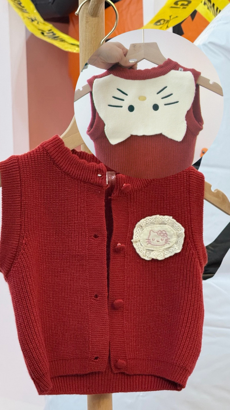 熱賣中🔥 即將售完G1013(10)-1414紅KT貓荷葉領針織背心