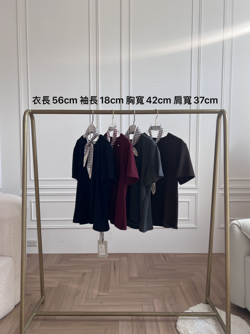 熱賣中🔥 即將售完女V0815-素面圓領小圓牌短袖上衣+白領巾