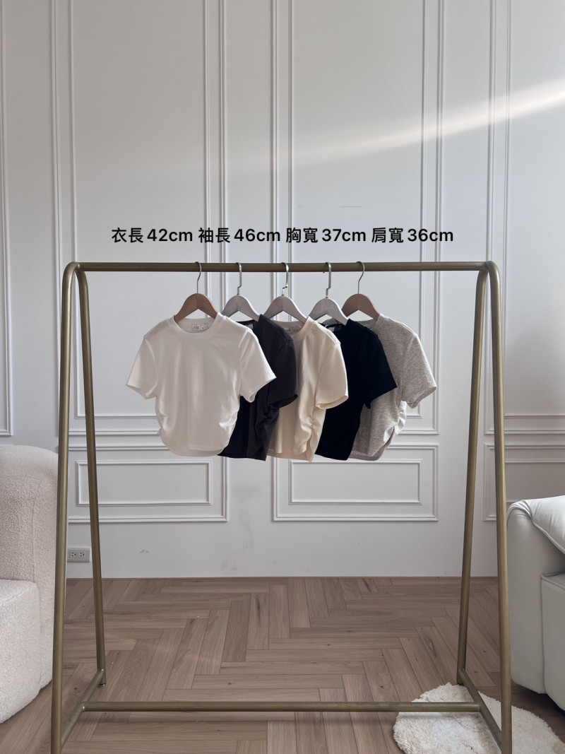 熱賣中🔥 即將售完女V0815-020 深灰素面圓領側抓皺短版短袖上衣