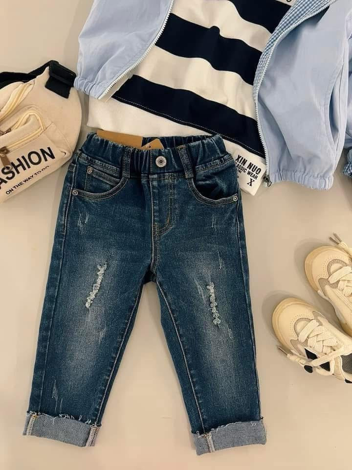 熱賣中🔥 即將售完廠TH-6031深藍微刷破反摺牛仔褲(9850小)