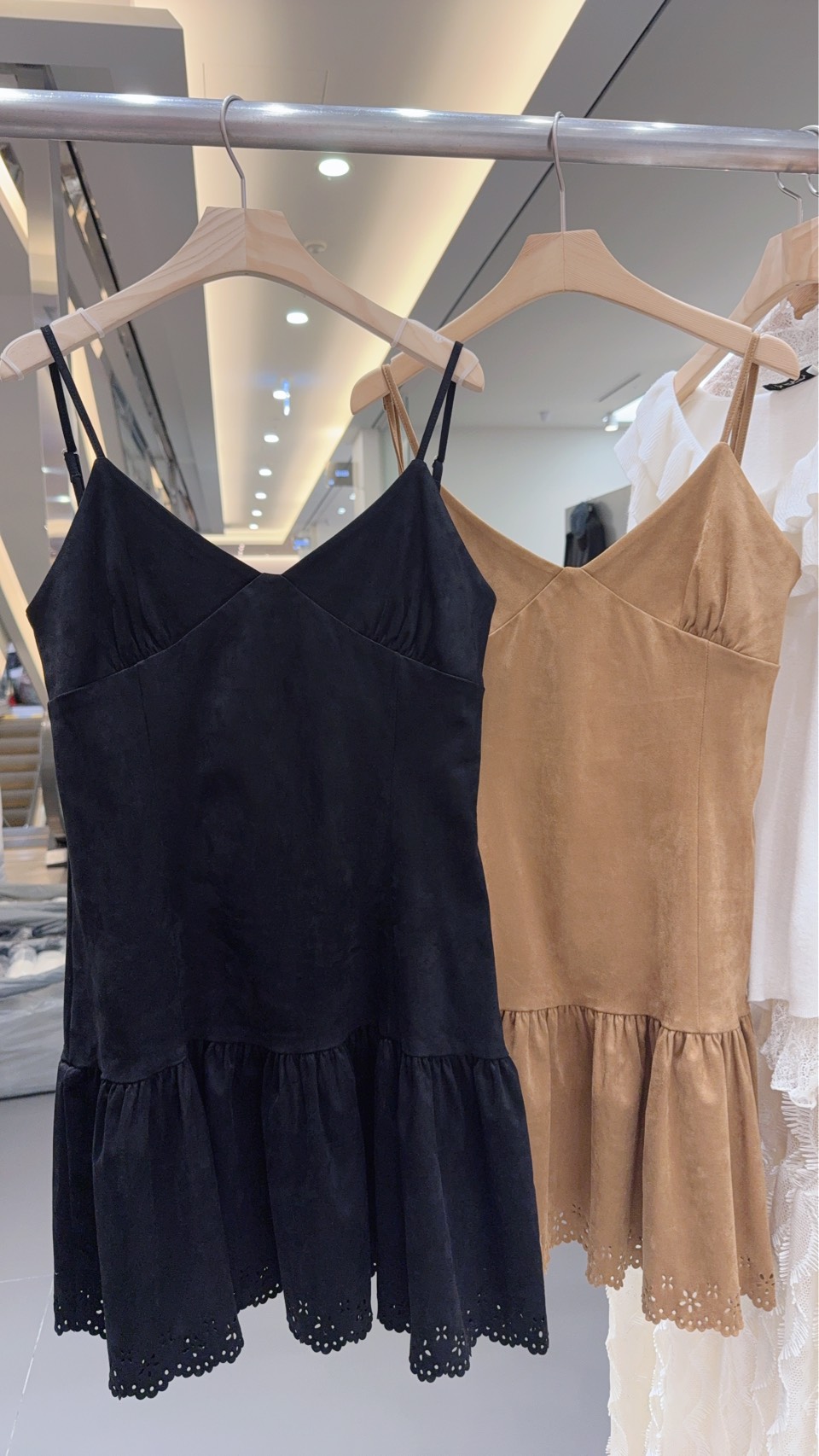 熱賣中🔥 即將售完27標 預購 細肩帶仿麂皮短洋 黑/咖 建議S-M身形 胸88 長82-90(長可調) 韓國連線價2180喜歡+1帶哪裡取(A嘉義取B台中取C郵寄)