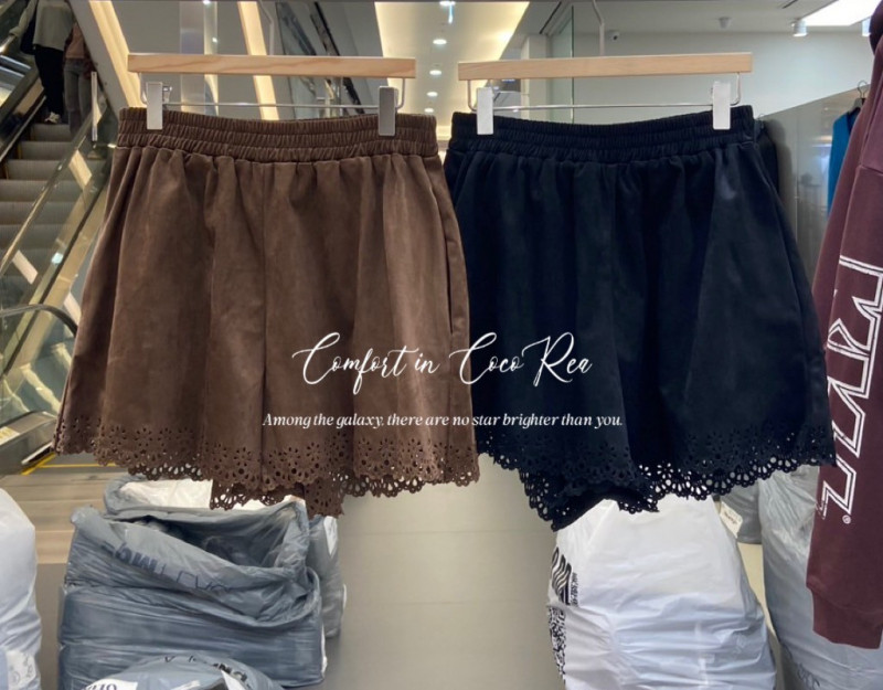 熱賣中🔥 即將售完20標 預購 下擺雕花仿麂皮短褲 黑/咖 腰26-42吋 臀43內 長39 韓國連線價1780(前20位加單$1688)喜歡+1帶哪裡取(A嘉義取B台中取C郵寄)