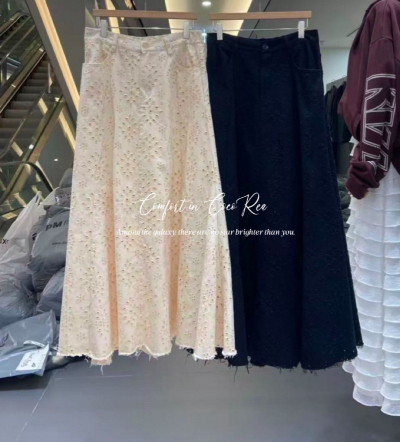 熱賣中🔥 即將售完24標 預購 8片拼接燒花牛仔長裙 黑/米 腰28-32吋臀40吋內 長94 韓國連線價2780(前10位加單$2688)喜歡+1帶哪裡取(A嘉義取B台中取C郵寄)