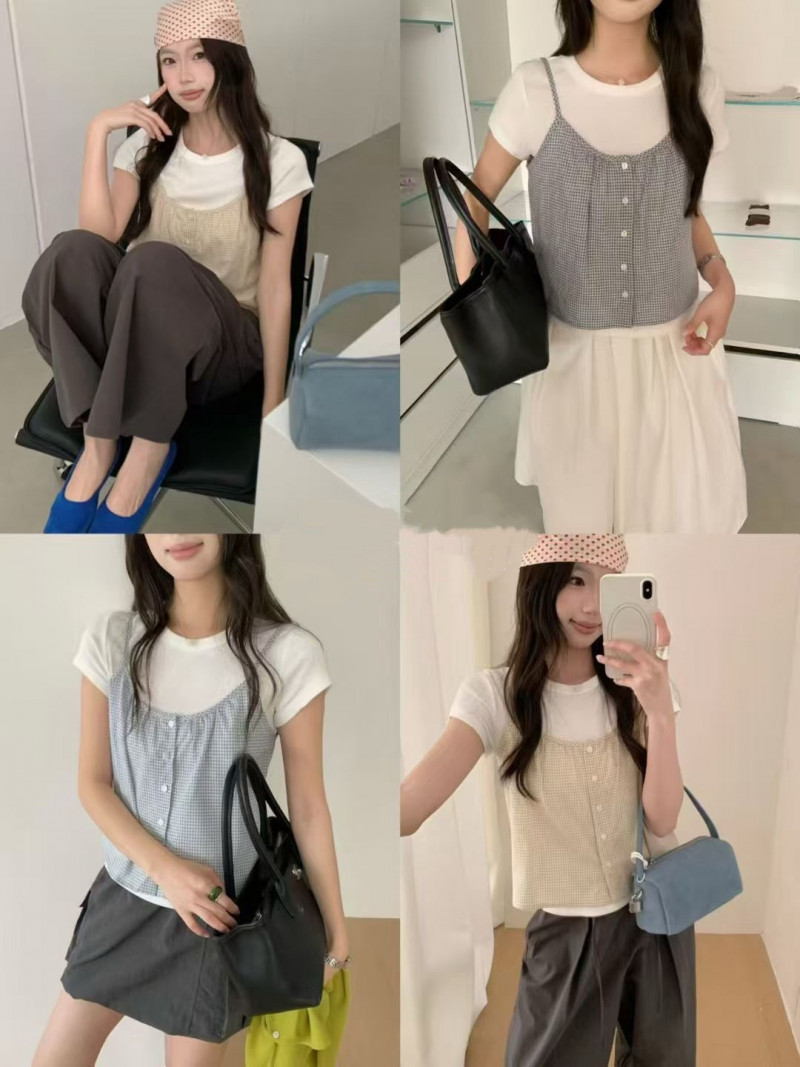 熱賣中🔥 即將售完A126兩件式格紋背心+白tee