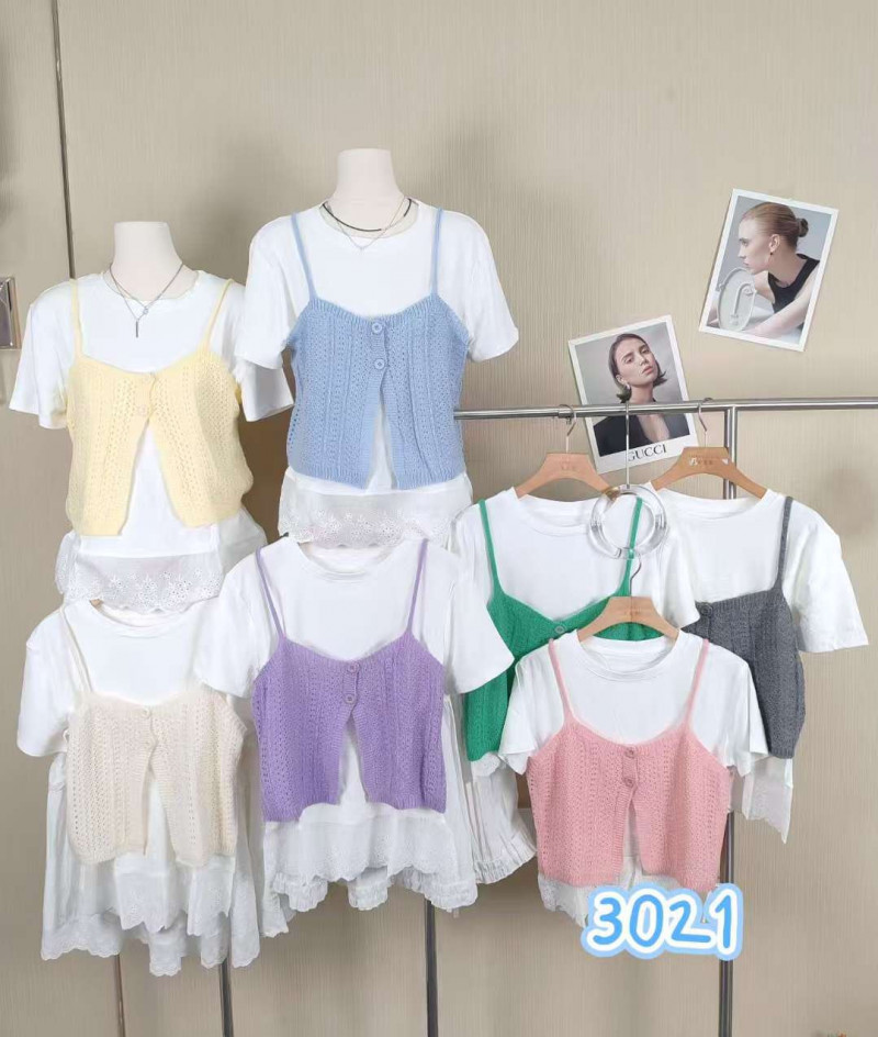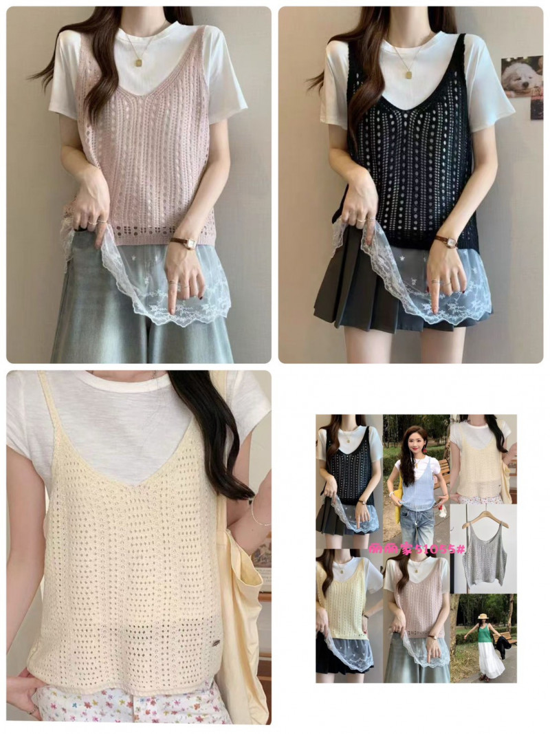熱賣中🔥 即將售完A144針織背心+拼接緹花棉t