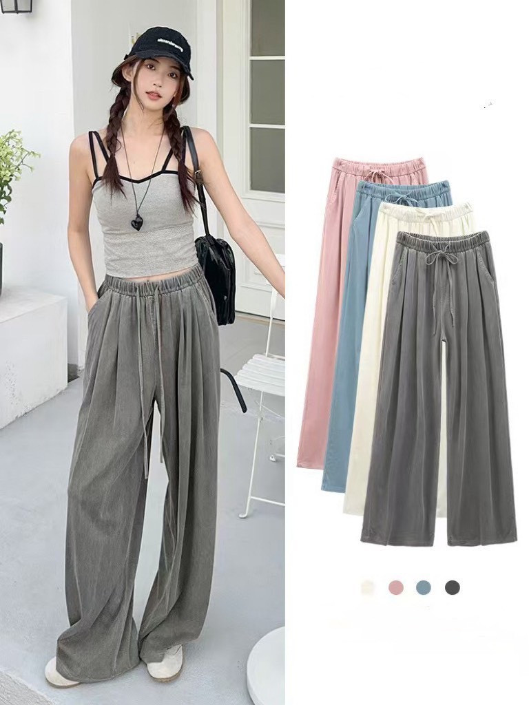 熱賣中🔥 即將售完A106柔軟面料~水洗抽繩寬褲
