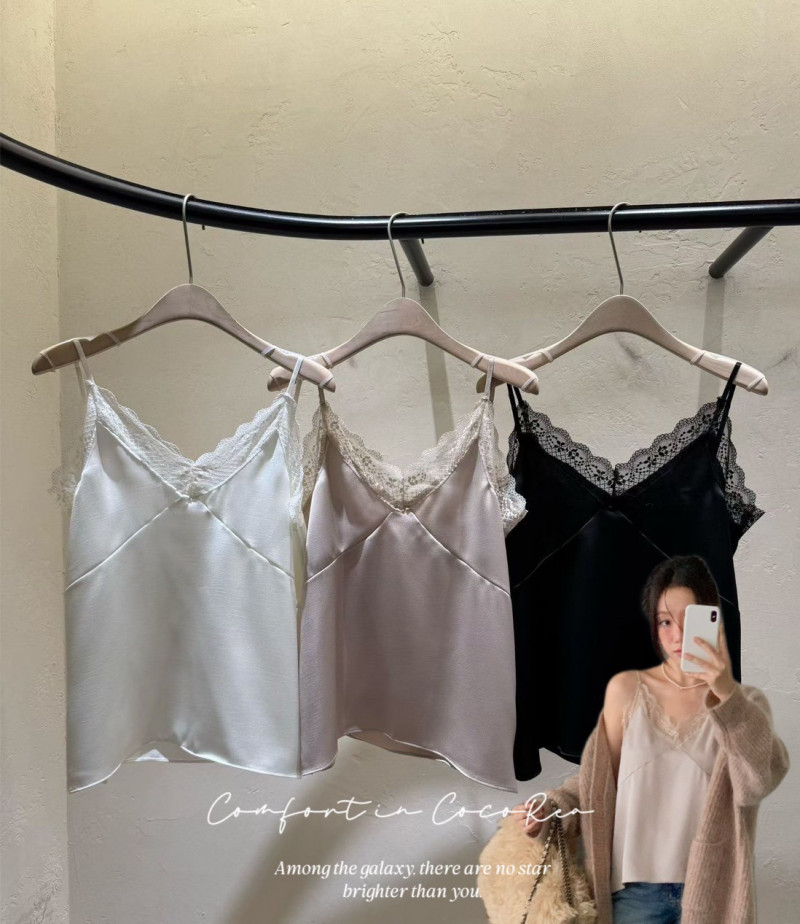 熱賣中🔥 即將售完130標 預購 V領挺蕾絲霧緞面背心 黑/白/杏 胸96(胸圍96內) 長55-60 韓國連線價1280(線上加單$1188)喜歡+1帶哪裡取(A嘉義取B台中取C郵寄)