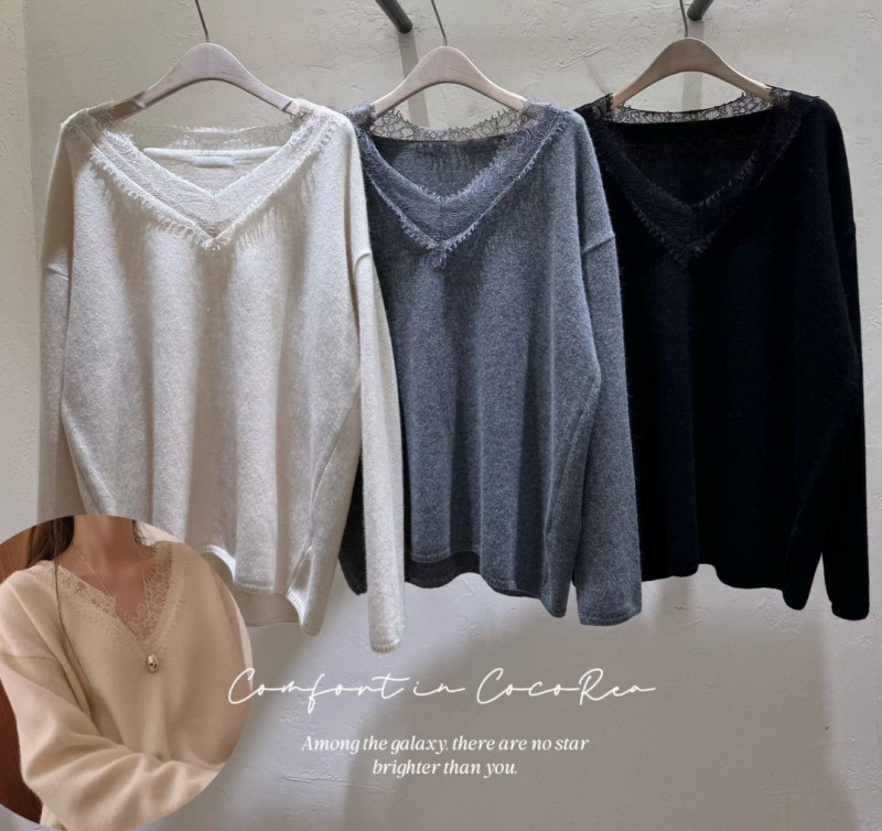 熱賣中🔥 即將售完135標 預購 V領睫毛蕾絲羊毛衣 灰/米/黑 胸120 長68 韓國連線價1980喜歡+1帶哪裡取(A嘉義取B台中取C郵寄)
