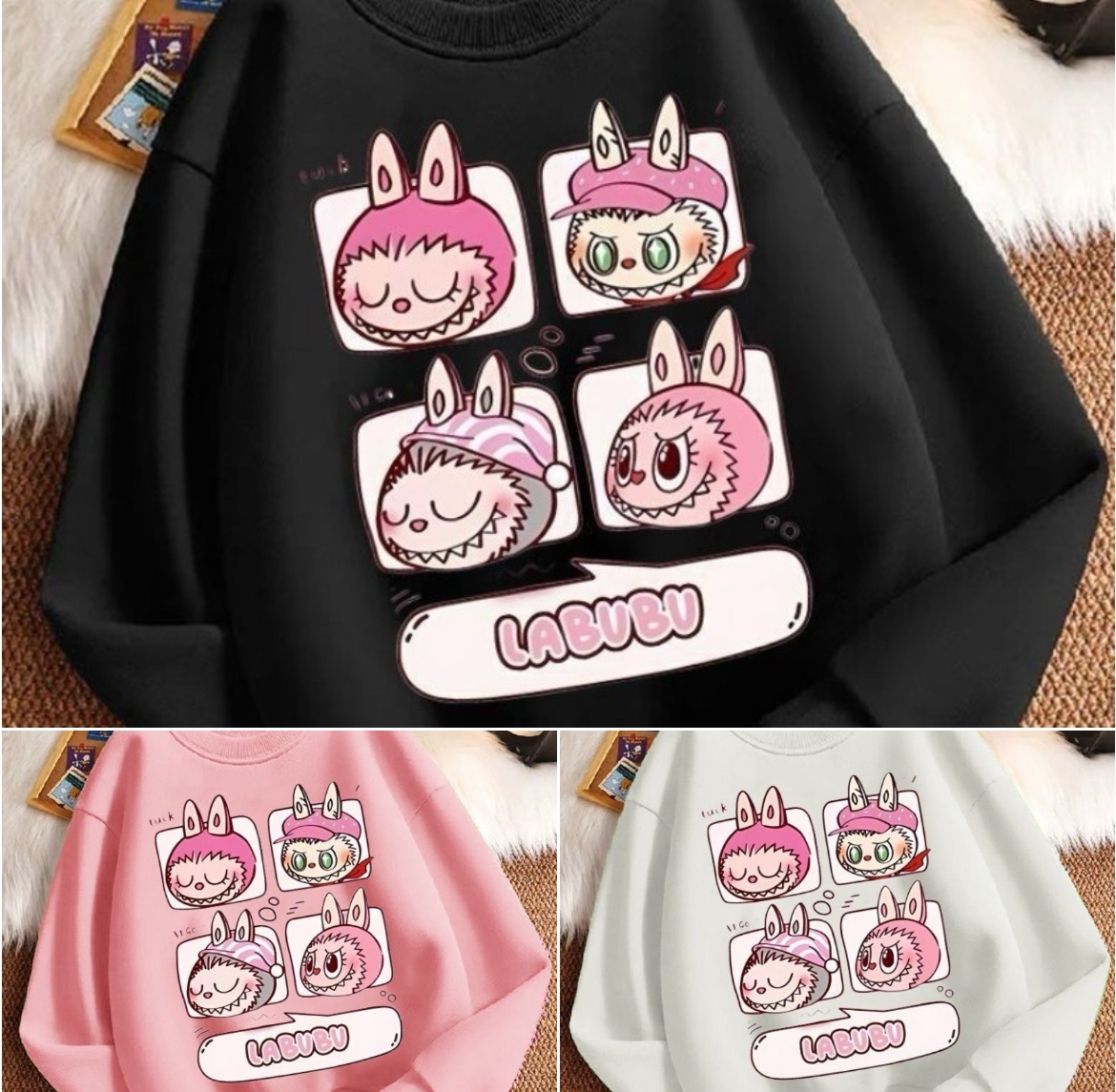 熱賣中🔥 即將售完預購- LABUBU 拉布布周邊圓領男女秋冬款情侶寬鬆百搭長袖上衣(四格漫畫系列)