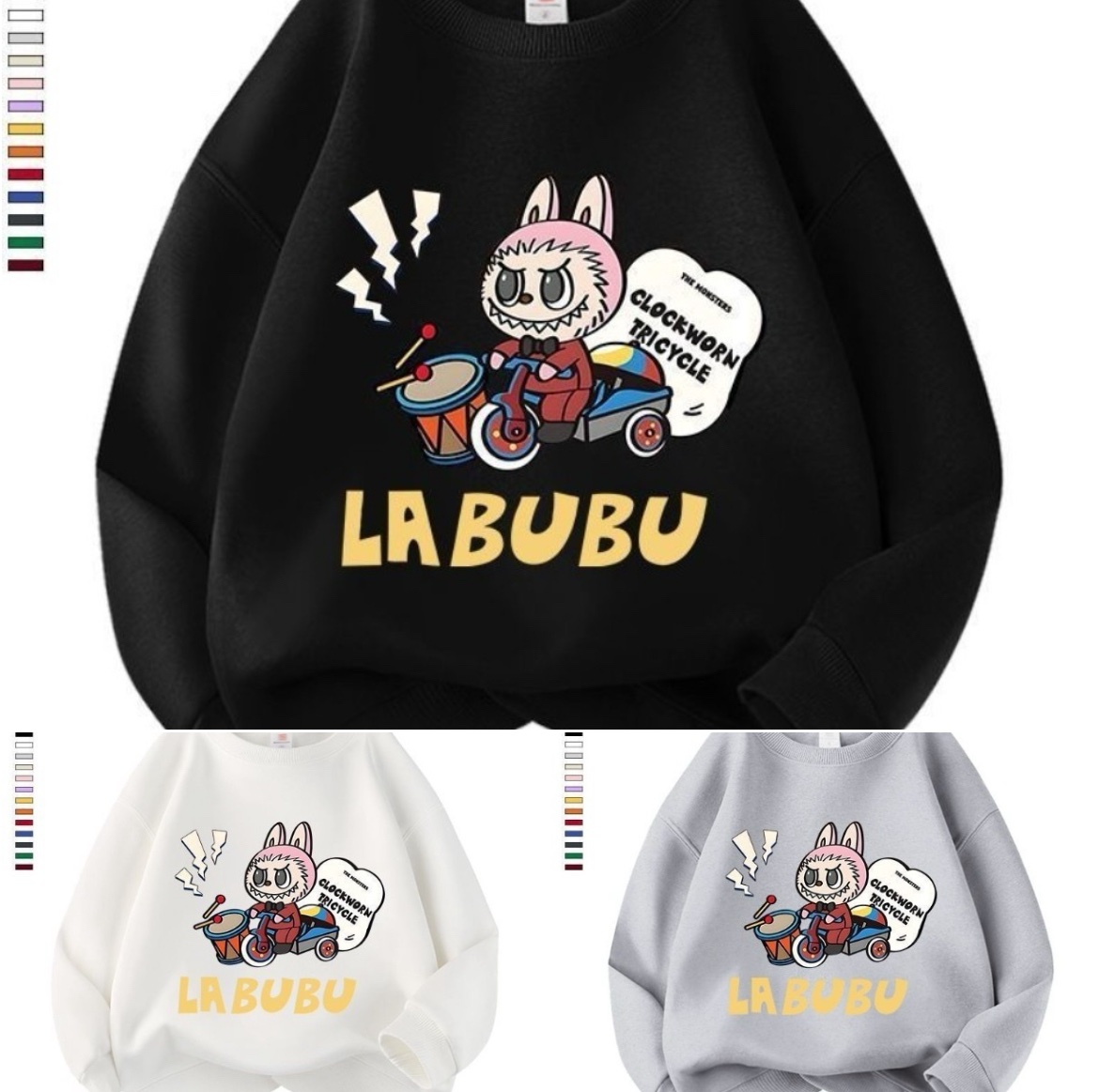 熱賣中🔥 即將售完預購- LABUBU 拉布布周邊圓領男女秋冬款情侶寬鬆百搭長袖上衣(腳踏車系列)