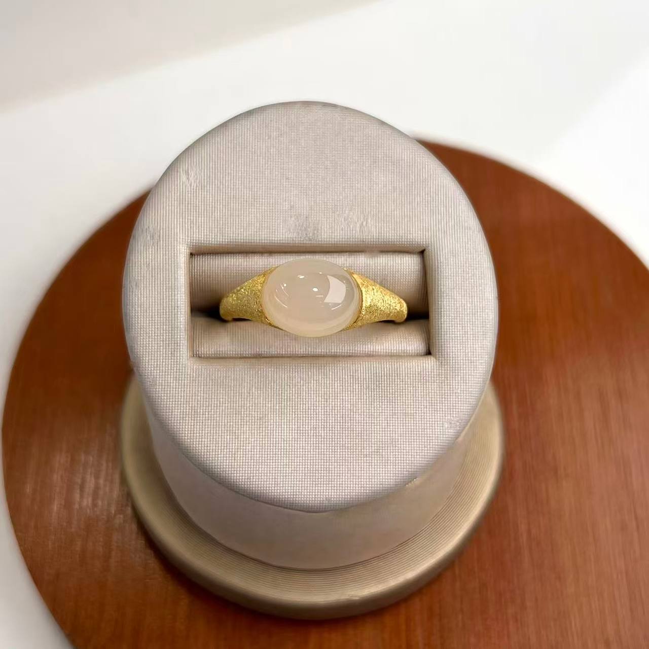 Hot Selling🔥 Almost Sold OutAJ339-和田玉藕粉8x10mm蛋面拉丝戒