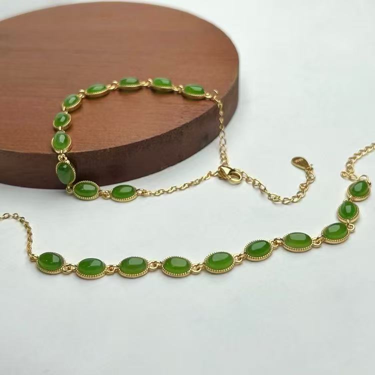 Hot Selling🔥 Almost Sold OutAJ395-和田碧玉蛋面4X6mm+-拼镶手链