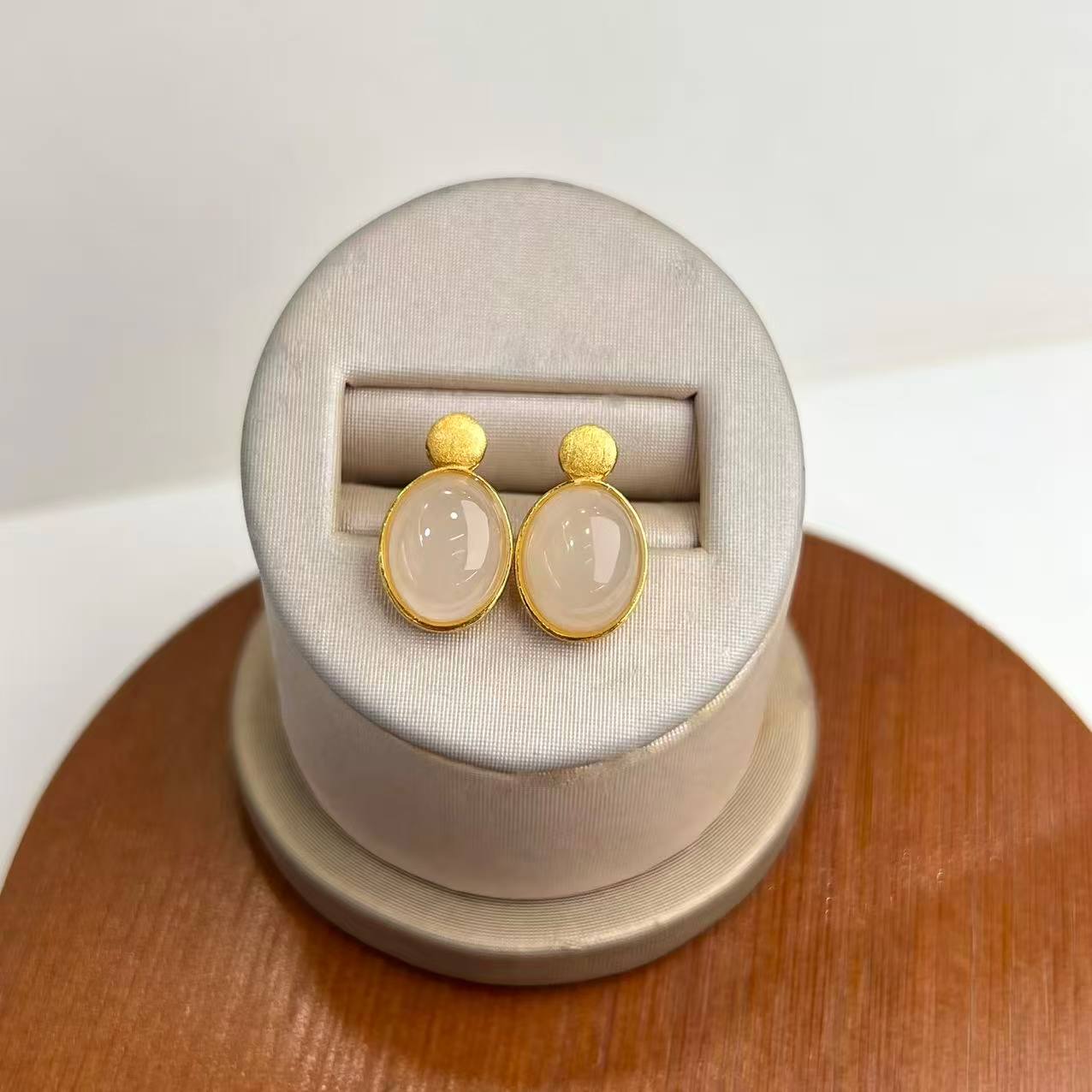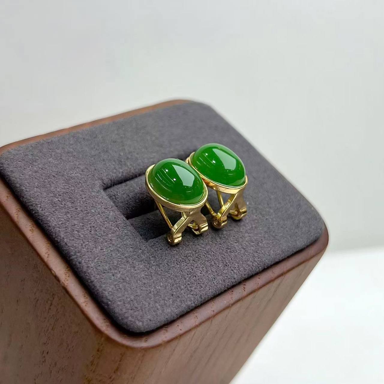 Hot Selling🔥 Almost Sold OutAJ421-和田碧玉9x11mm+-蛋面耳扣