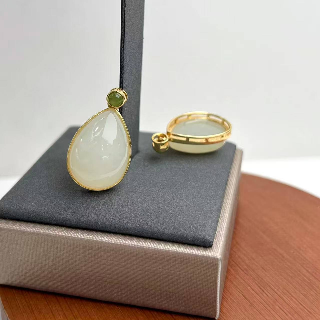 Hot Selling🔥 Almost Sold OutAJ415-和田白玉13x18m+-水滴&碧玉3m+-半圆拼镶吊坠