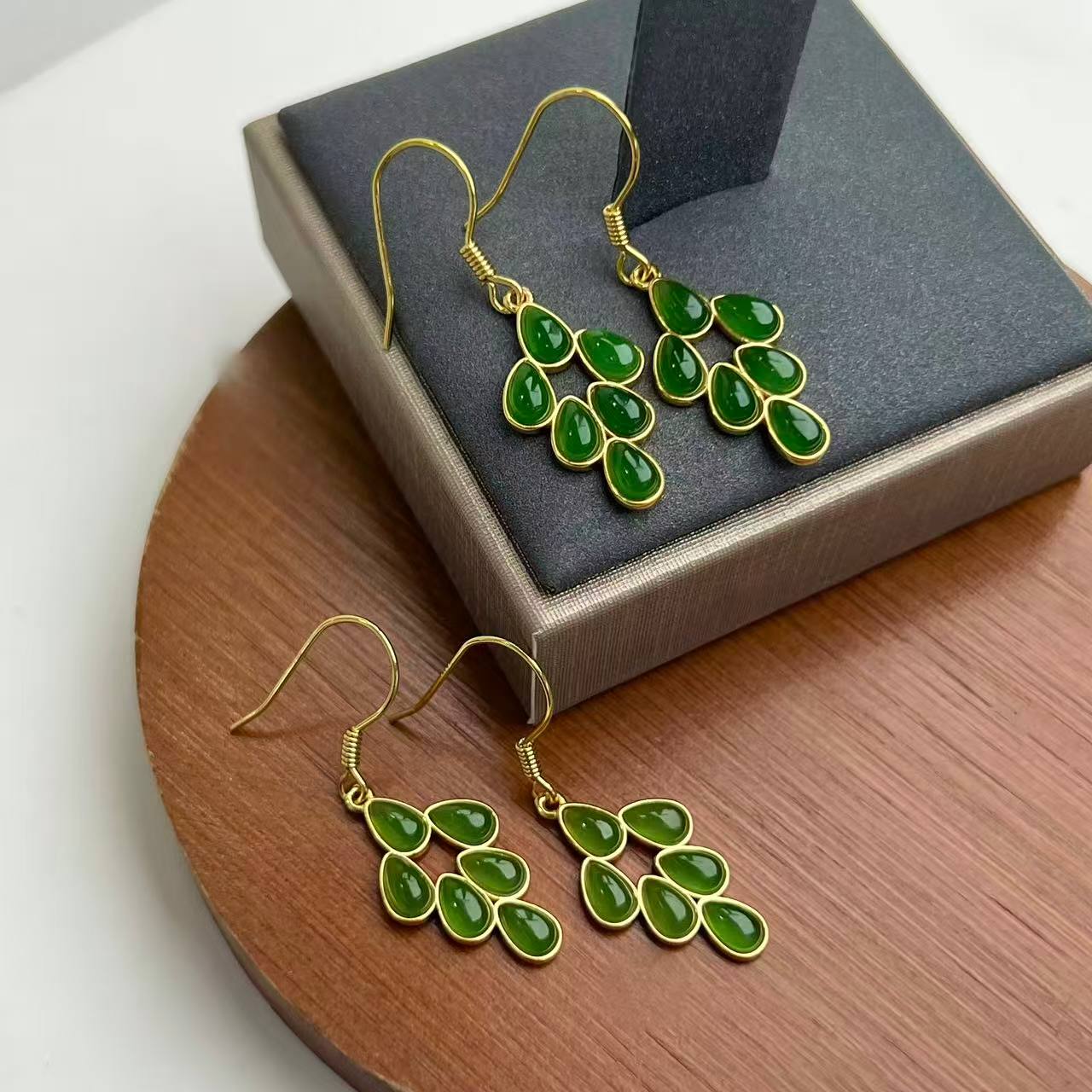 Hot Selling🔥 Almost Sold OutAJ328-和田碧玉3x5mm水滴拼镶耳挂
