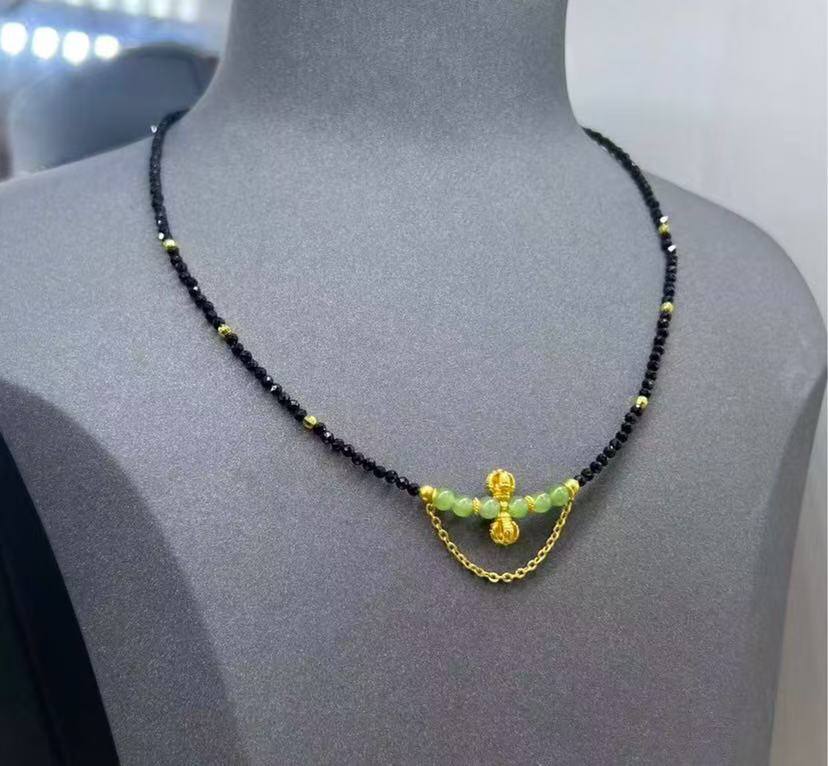 Hot Selling🔥 Almost Sold OutAJ470-4mm碧玉DIY黑尖晶项链