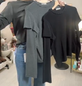 熱賣中🔥 即將售完04.A260022簡約純棉花邊假2件長袖T(胸圍54衣長56)