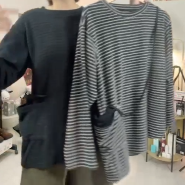 熱賣中🔥 即將售完23.A020093韓系寬鬆條紋上衣(胸圍60 衣長70)