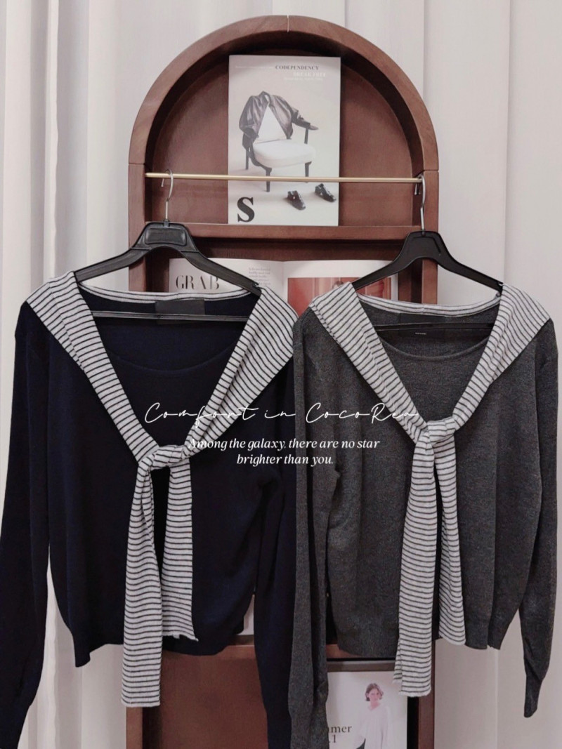 熱賣中🔥 即將售完59標 預購 針織附條紋連帽披肩上衣 灰/藍 胸104 長54 韓國連線價1180喜歡+1帶哪裡取(A嘉義取B台中取C郵寄)