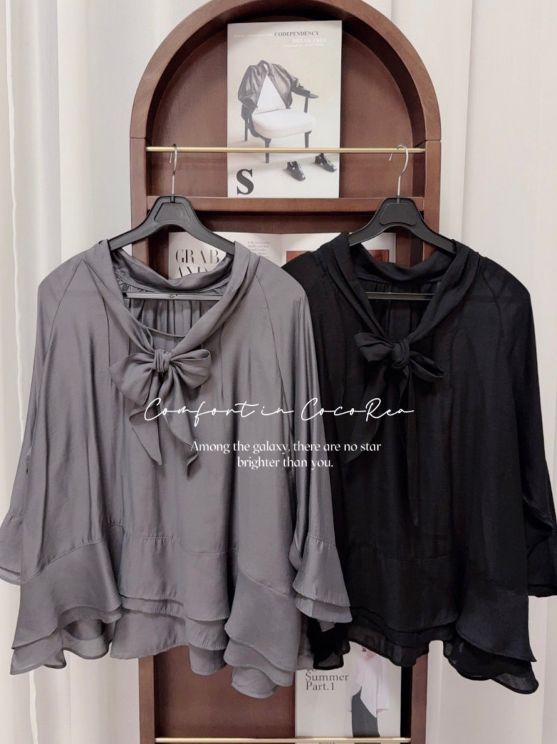 熱賣中🔥 即將售完70標 預購 可綁帶天絲下荷葉襯衫 黑/灰 胸120 長60-63 韓國連線價1380(前20位加單 $1258)喜歡+1帶哪裡取(A嘉義取B台中取C郵寄)