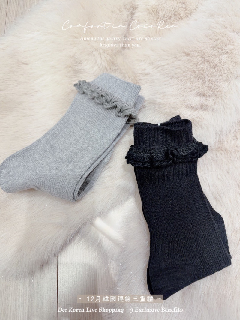 熱賣中🔥 即將售完58標 預購 荷葉滾邊(含羊毛)襪 黑/灰 1雙 韓國連線價198喜歡+1帶哪裡取(A嘉義取B台中取C郵寄)