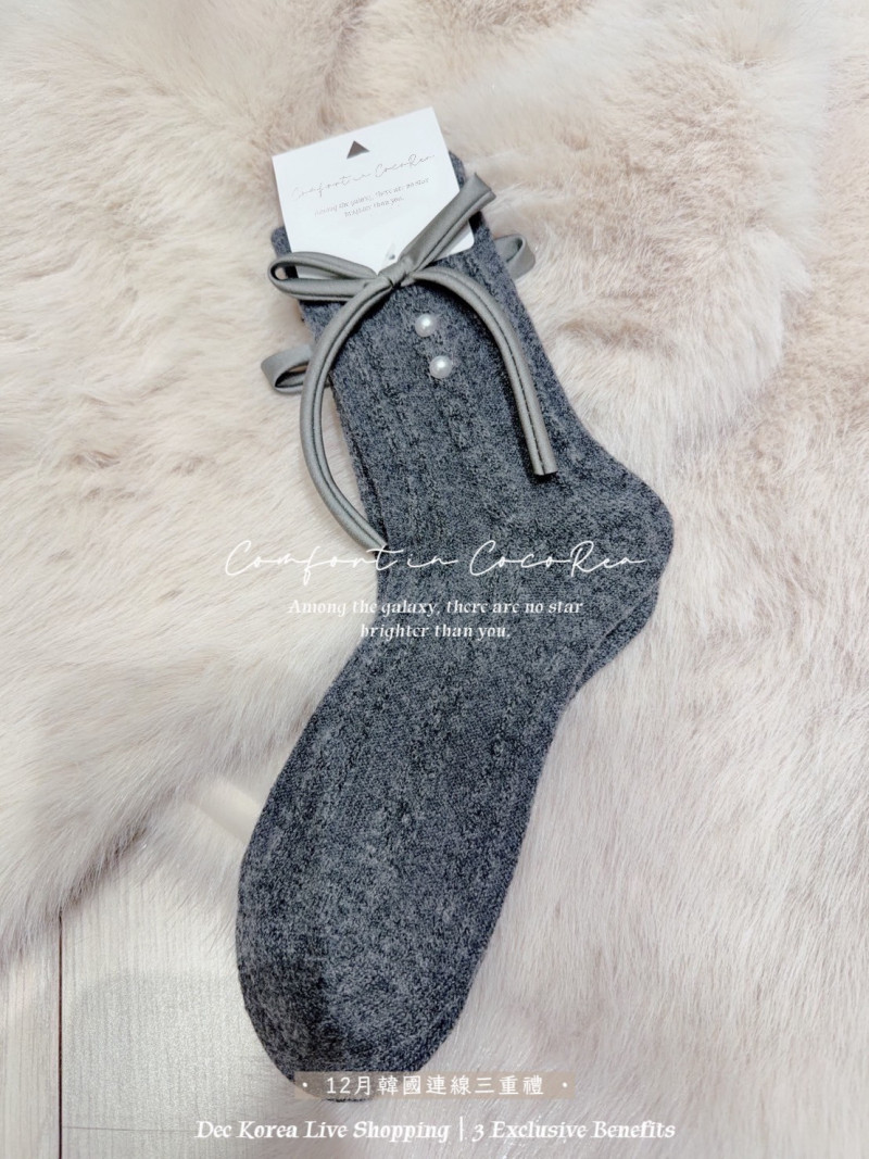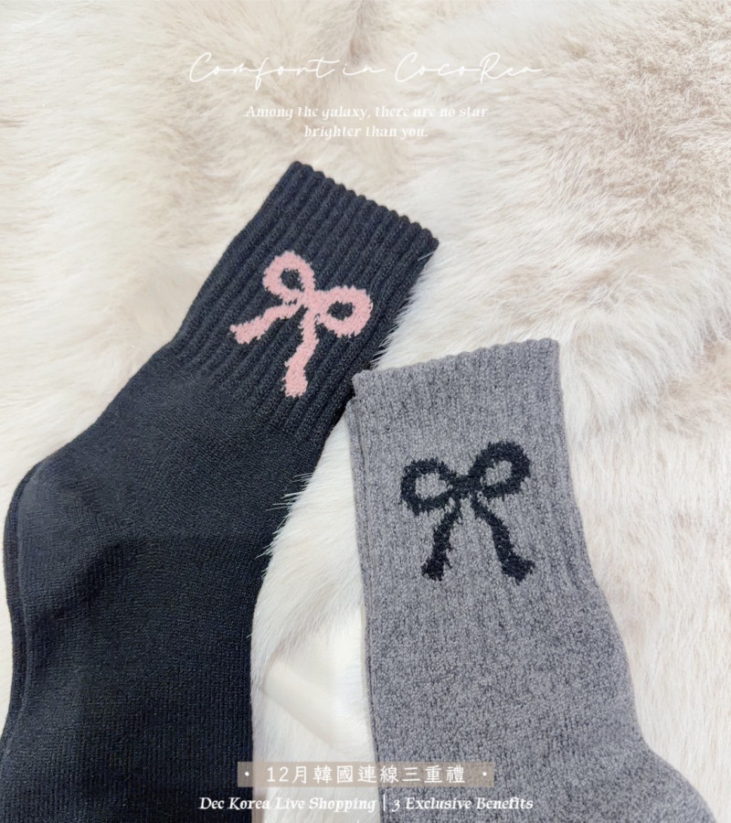 熱賣中🔥 即將售完56標 預購 限量50組 蝴蝶結羊絨襪 (黑+灰) 2雙1組 韓國連線價299喜歡+1帶哪裡取(A嘉義取B台中取C郵寄)