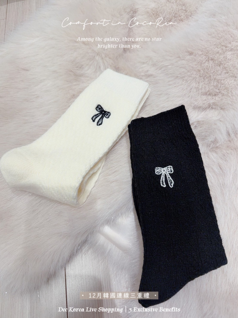 熱賣中🔥 即將售完59標 預購 拼色電繡蝴蝶結羊絨襪 1雙 韓國連線價168喜歡+1帶哪裡取(A嘉義取B台中取C郵寄)