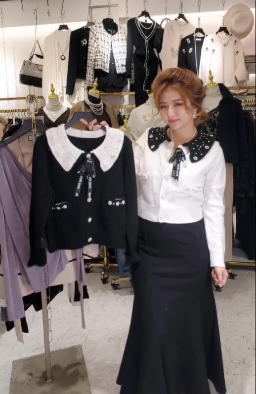 熱賣中🔥 即將售完7258420領配色釘珠鑽針織外$798