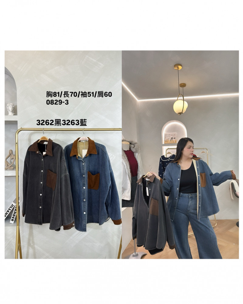 熱賣中🔥 即將售完女PF1-1205(08)-撞色牛仔磨毛外套