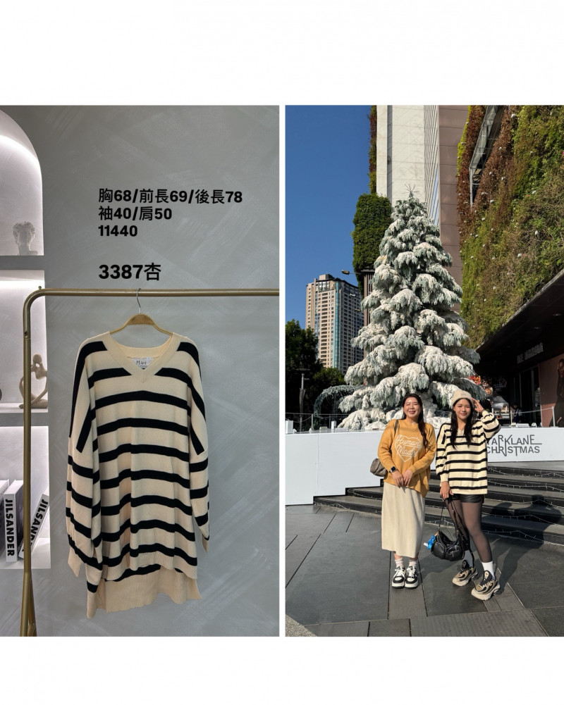 熱賣中🔥 即將售完女PF1-1013(08)-V領坑條長版衣