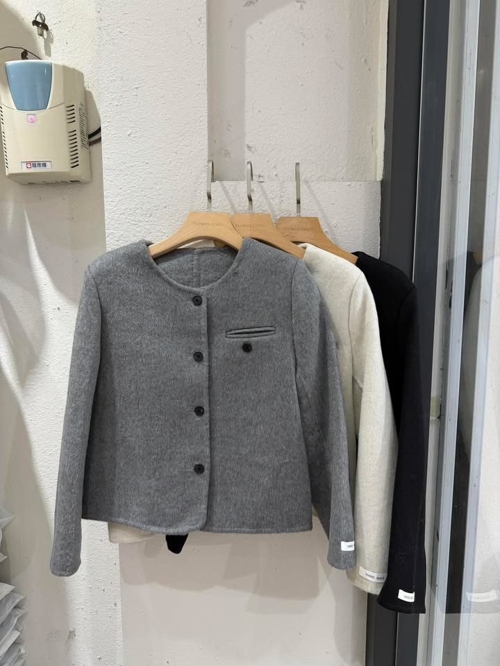 熱賣中🔥 即將售完45HANDMADE羊毛手標無領外套(黑)
