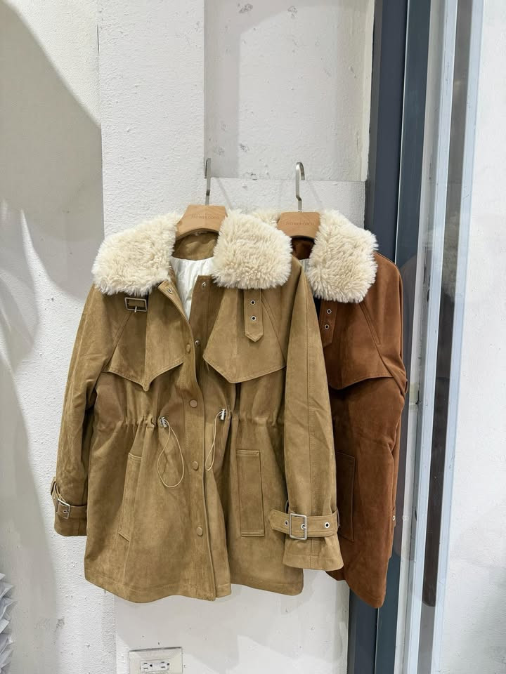 熱賣中🔥 即將售完65翻領毛領羽絨縮腰麂皮外套